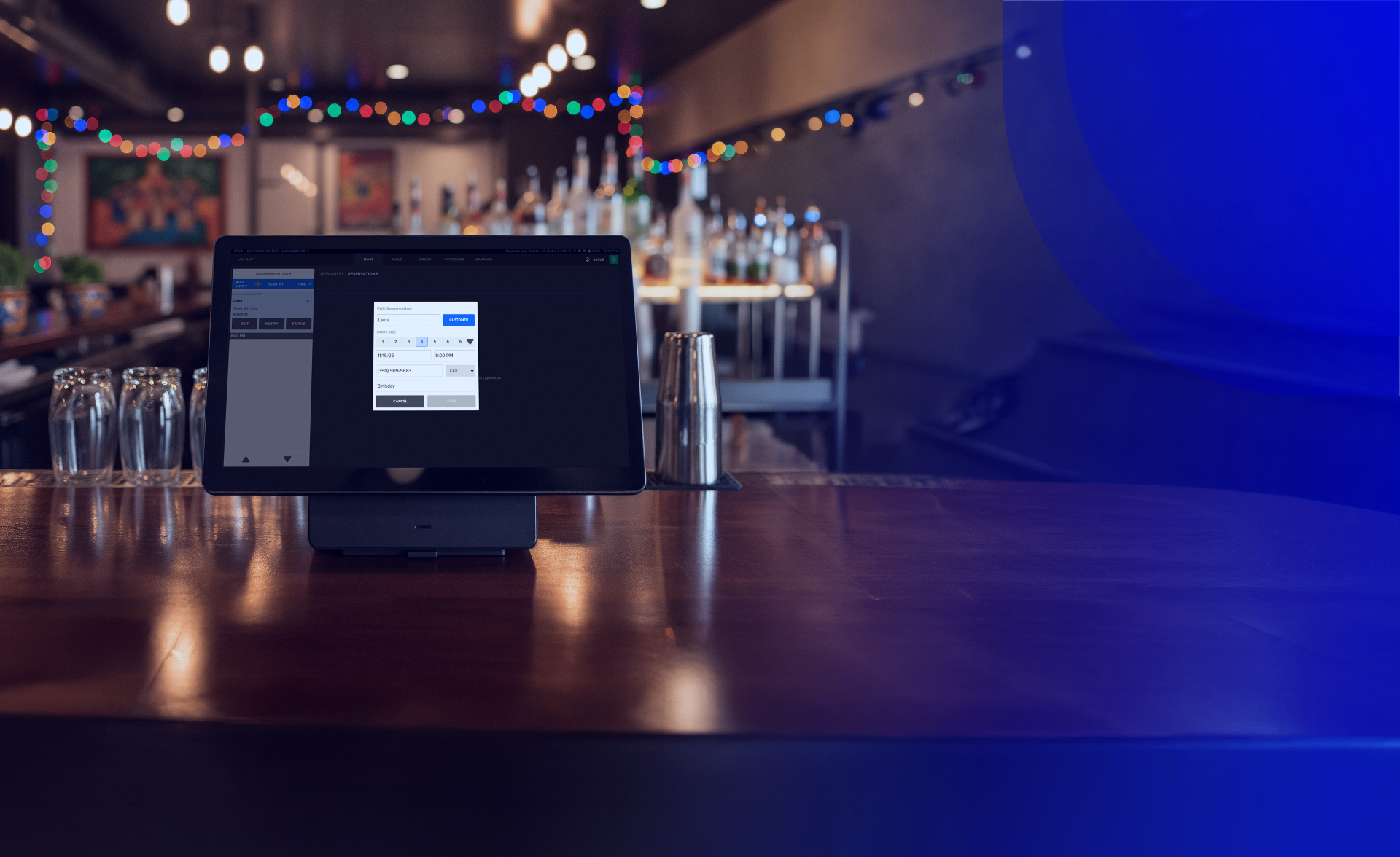 We install, set up your full menu, train your team on the floor.